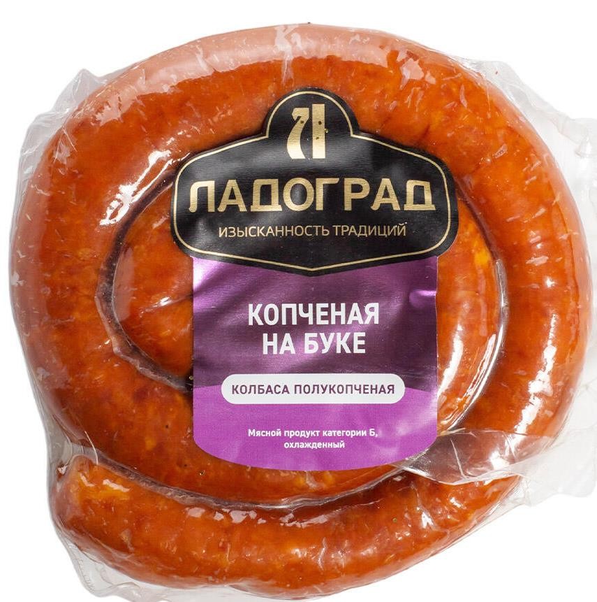 Состав продукта: свинина, говядина, шпик свиной, посолочная смесь (соль пищевая, фиксатор окраски Е250), специи (орех мускатный, перец душистый, чеснок, перец красный), сахар, регулятор кислотности (Е331), антиокислитель (Е316), усилитель вкуса (Е621).